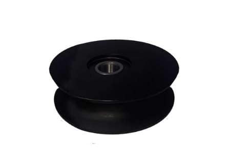 In the example shown bearings have been added to allow for complete assemblies being delivered to the customer. This wheel is used as a rope pulley, the nylon material is very smooth to not allow for any abrasion of the rope and provides adequate strength for the application.